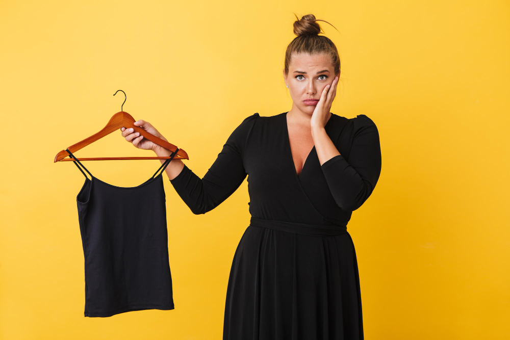 Evita materialele prea subțiri care se lipesc de corp sau cele foarte groase care adaugă volum. Dacă vrei un efect elegant și natural, mizează pe haine care urmează linia corpului, nu o strâng și nici nu o maschează complet.